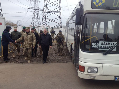 "В достаточно быстром темпе почти не используя бюджетные средства работали пограничники, военные, помогали материально районная администрация…. Работали электрики, которые помогли подвести электроэнергию. Ключевой вопрос - жители девяти населенных пунктов не будут преодолевать при проезде в Бахмут, большую Украину КПВВ. Это cущественно упростит жизнь людям, - сказал глава Донецкой области Павел Жебривский. Как отметил начальник штаба АТО генерал-лейтенант Руслан Хомчак, речь идет о том, что пограничники, работники государственной фискальной службы сдвинулись на 15 километров ближе к линии разграничения. По его мнению, опасность для пересекающих КПВВ не увеличилась, так как раньше по этой же дороге люди ходили и передвигался транспорт. "Я хотел бы пожелать, чтобы в ближайшее время мы разобрали этот КПВВ как ненужный, а пограничники чтобы вышли на границу Украины и выполняли свои обязанности как они умеют это делать… А слово "враг" чтобы вообще из нашего лексикона исчезло, потому что ситуация, которая сейчас происходит она не нужна никому", - сказал Р.Хомчак. На месте, где раньше находился КПВВ "Зайцево", блокпостов не будет. На этом участке запланирован ремонт дороги. Предполагается, что после переноса увеличится пропускная способность КПВВ. Если на старом КПВВ "Зайцево" работали три полосы, то на КПВВ "Майорск" их будет восемь: 4 на въезд и 4 на выезд.
