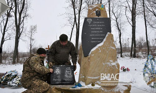 В субботу, 3 декабря, была установлена новая мемориальная плита в память о военнослужащих 25-й бригады ВСУ, погибших летом 2014 года у трассы сообщением Краматорск-Славянск.