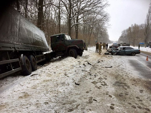 "ДТП на автодороге Славянск-Изюм, район поворота на села Крест. Автомобиль "КрАЗ" ехал замыкающим в колонне, выехал на встречную полосу и столкнулся с двумя легковушками "Ауди" и "Ланос". В результате столкновения "КрАЗ" и "Ланос" вылетели в кювет", - сообщил Вячеслав Аброськин.