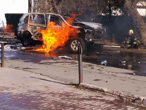 В девятом часу утра 31 марта в Мариуполе, на пересечении проспекта Металлургов и улицы Кафайской, взорвался автомобиль "Тойота Ленд крузер".
