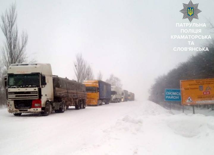 Как сообщает пресс-служба Службы автомобильных дорог в Донецкой области, движение грузового транспорта запрещено по автодороге М-03 Киев - Харьков - Довжанский, от границы с Харьковской областью до Бахмута (км 646-км 709) с утра 23 января.