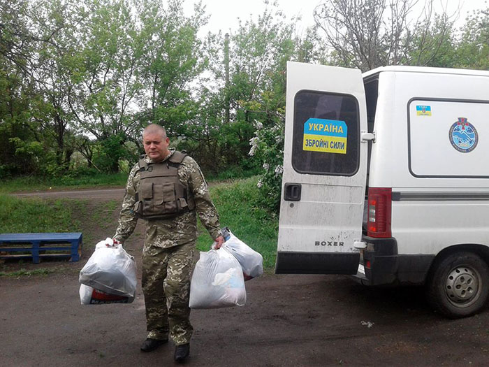 Жители прифронтового поселка Жованка получили сезонные вещи, которые собрали для них неравнодушные жители Краматорска. Вещи, продукты питания и свежую прессу в Жованку доставили офицеры группы Cimic Bahmut.