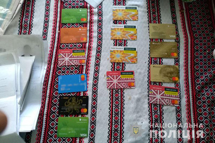 У координатора преступной группы и его помощников изъято оригиналы паспортов граждан, в том числе лиц, подозреваемых в участии в незаконных вооруженных формированиях, чужие банковские карточки, записи с номерами счетов потерпевших.