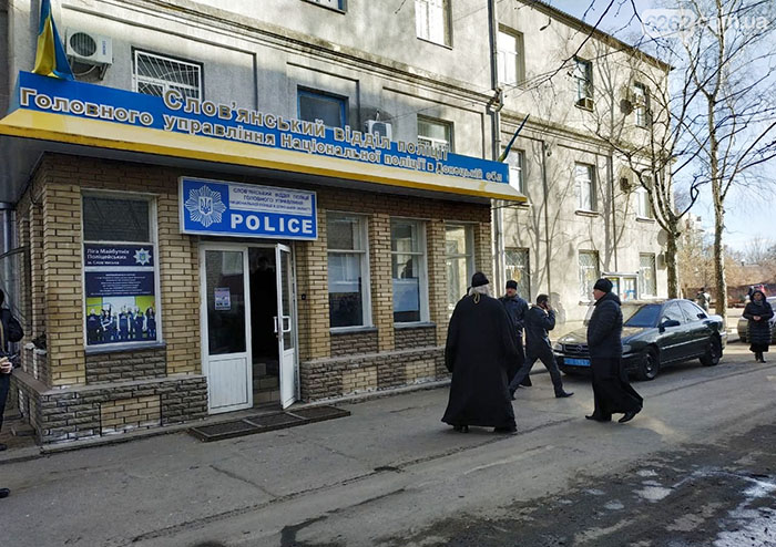 В защиту "батюшки", группа поддержки устроила церковные песнопения под зданием полиции Славянска.