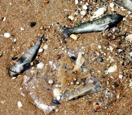 Вода в Азовском море еще только начала прогреваться, а все побережье около Мариуполя уже усеяно мертвыми бычками.