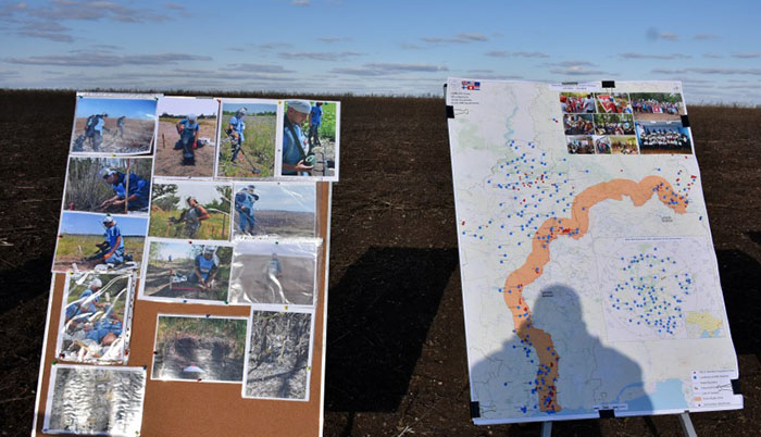 «Сегодня мы впервые официально передали результат нашей работы - это восемь разминированных участков в Донецкой области, которыми теперь смогут пользоваться местные общины. Опасных территорий остается еще очень много, и то, что мы передали сегодня - лишь малая часть. На сегодняшний день мы нашли и передали на обезвреживание около 3000 боеприпасов - это противотанковые, противопехотные мины, неразорвавшиеся снаряды», - отметила менеджер по связям с общественностью The HALO Trust Марина Куль.