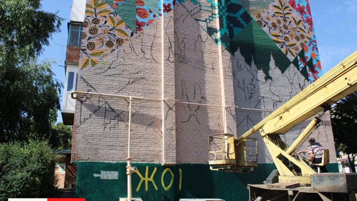 «Я думаю, это какой-то местный художник, который имеет свой взгляд на искусство. Это нормально», — говорит представитель творческой группы KAILAS-V Сергей, который расписывает стену.