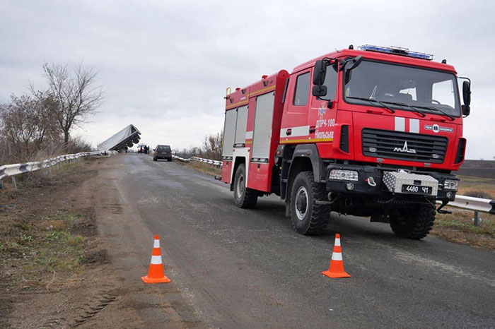 Для обеспечения пожарной безопасности, на место происшествия было направлено отделение на автоцистерне. В ликвидации последствий ДТП принимал участие автокраны Zoomlion и САРМ аварийно-спасательного отряда специального назначения Главного управления ГСЧС Украины в Донецкой области.