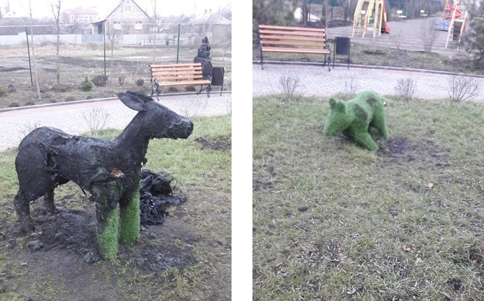 Напомним, что в ноябре 2019 года на набережной реки Бахмутки установили 15 фигур животных из искусственной травы. Но целыми они простояли недолго: в ночь на 4 января компания неизвестных подожгла и повредила несколько конструкций.
