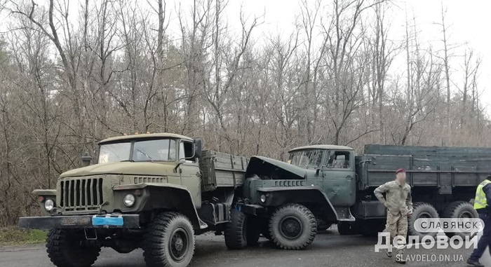 Утром 7 апреля недалеко от трассы М03 Киев-Харьков-Довжанское при въезде в Славянск произошла авария с участием военных автомобилей.