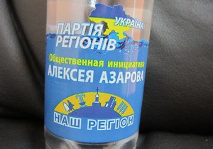 В частности, на бутылках написано "общественная инициатива" от Азарова-младшего. Внизу также добавлено надпись "Наш регион".