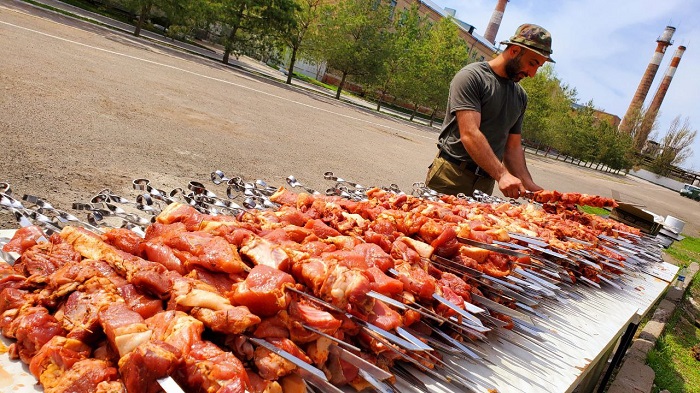 Рекорд Украины - самый длинный мангал на 401 шампур установили 2 мая на Донбассе, в пгт Донское Волновахского района.