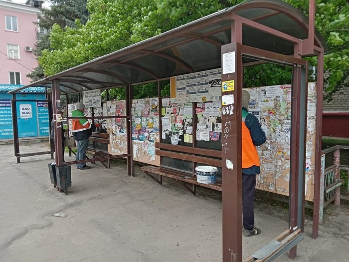 Сегодня, 12 мая, краматорское КП УРСАС поделилось в Facebook фотографиями работ по очистке остановок общественного транспорта от объявлений.