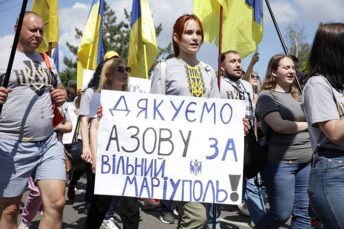 Участие в марше приняли несколько тысяч горожан. По центру Мариуполя прошла военная техника и пешая колонна представителей силовых структур: работники Нацполиции Украины, военнослужащие полка «Азов» и других подразделений, спасатели и курсанты ДонДУВД МВД Украины.