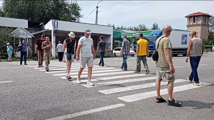 Протестующие не пропускали ни один вид транспорта. На дороге образовалась пробка.