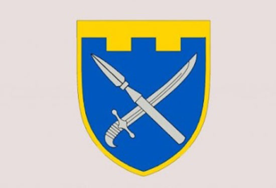 На эмблеме изображены скрещенные между собой серебряное копье и сабля.
