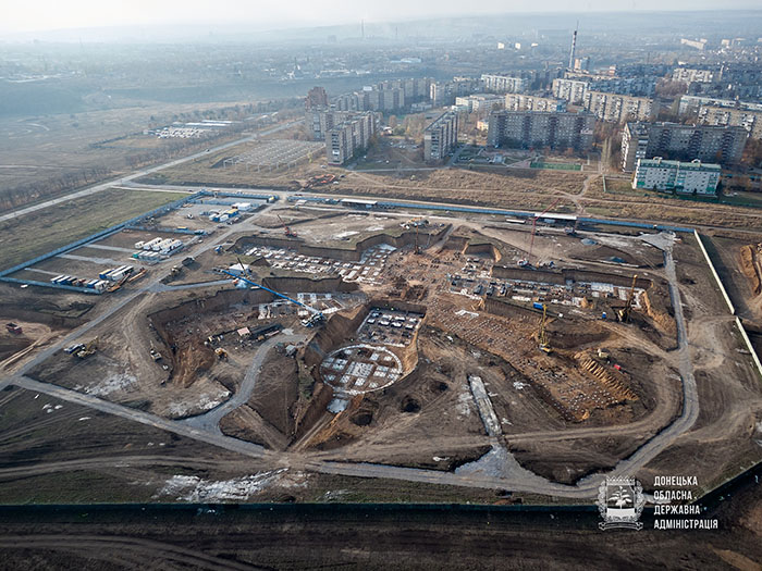 Глава Донецкой ОГА Павел Кириленко разместил в Facebook эффектные фотографии масштабного строительства новой больницы в Краматорске, сделанные с высоты.