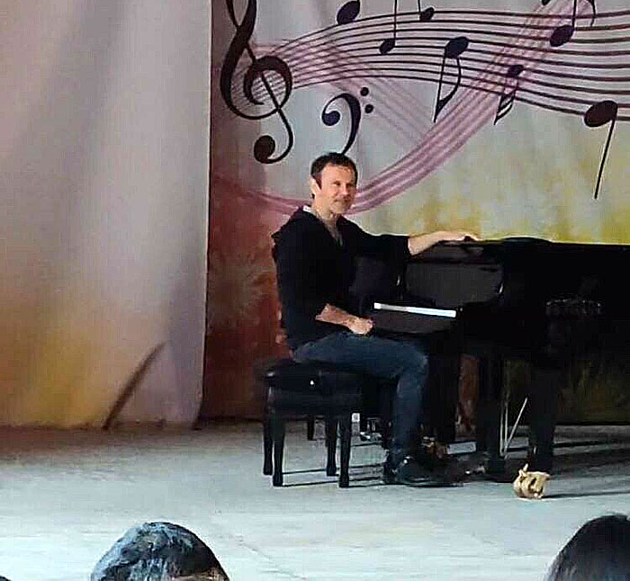 З гітарою та за роялем Вакарчук виконав свої найкращі хіти, зокрема пісню "Місто Марії", яка присвячена Маріуполю та "Азову".