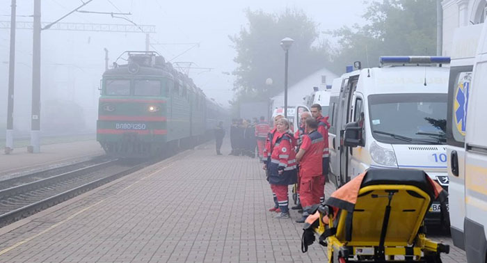 Приїхали і дорослі, і діти. Багато прибуло тяжкохворих людей, людей з інвалідністю. Тут їх зустрічали медики, волонтери, рятувальники. Людям надавати медичну допомогу, пропонували чай, їжу, допомагали з багажем, адже серед переселенців здебільшого жінки.