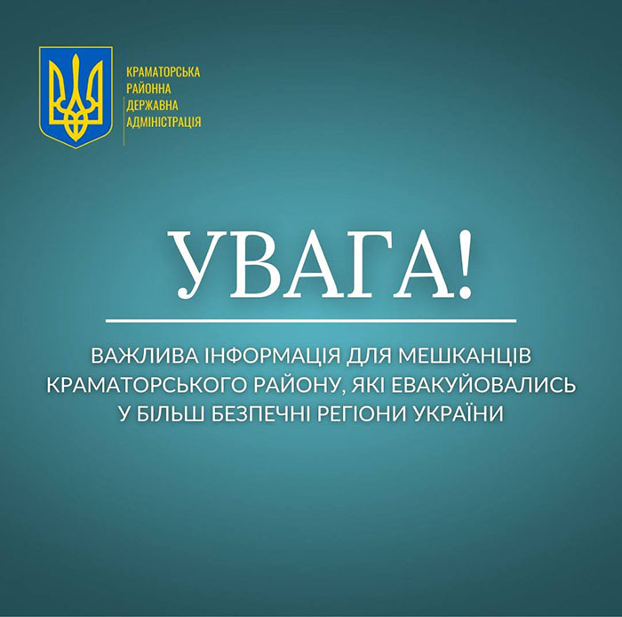 Шановні мешканці Краматорського району, які тимчасово виїхали зі своїх громад у більш безпечні регіони України.