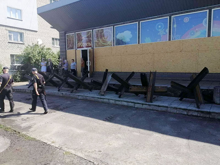 "... географічно ці торгові точки добре вписуються в третю лінію оборони Слов'янська. І вже у понеділок біля них з'являться фортифікаційні споруди – протитанкові їжаки, бліндажі та інші», – заявив у Facebook голова військової адміністрації міста", - заявив Вадим Лях.