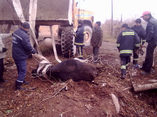 По сообщению пресс-службы Главного территориального управления МЧС Украины в Донецкой области, в Дружковке спасателям пришлось вызволять корову из колодца пятиметровой глубины.