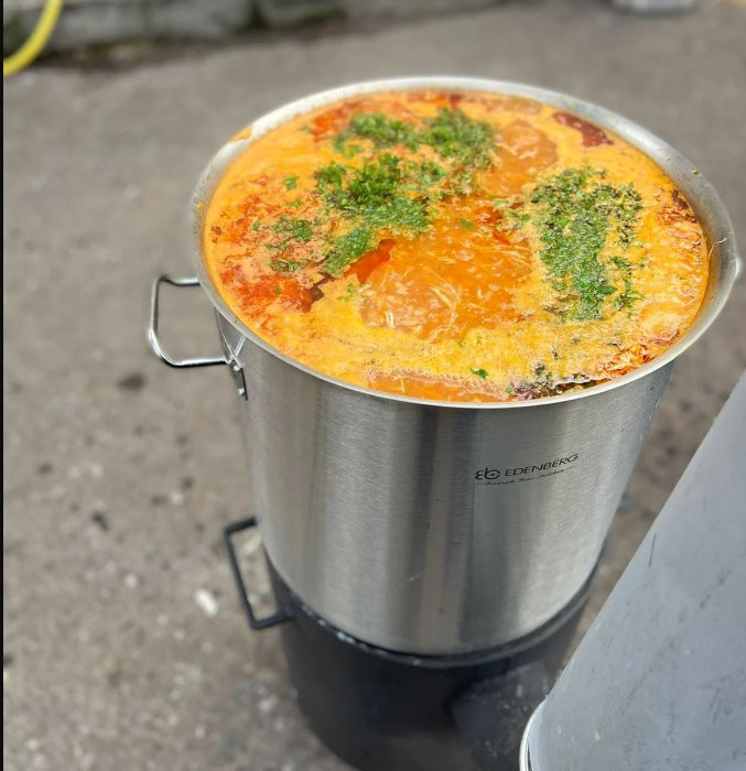 Завдяки давній та плідній співпраці Святогірської військової адміністрації з гуманітарною організацією World Central Kitchen та за участі місцевих підприємців, у деокупованому Святогірську також запрацював пункт гарячих обідів для місцевих жителів.