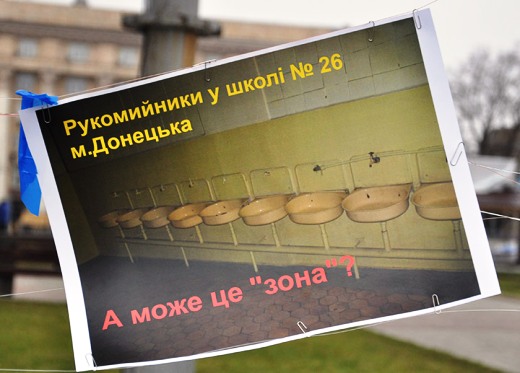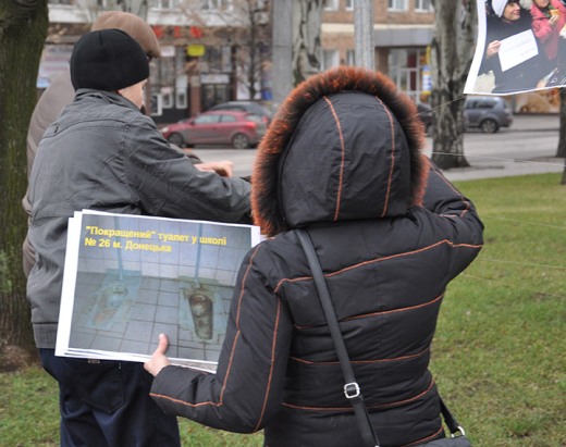 Сегодня, 8 декабря, активисты общественной организации «Фронт змин» провели на центральной площади Донецка фотовыставку под названием «Покращення».