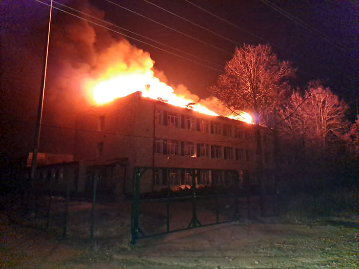"Росіяни завдали удару по житловому масиву із реактивних систем залпового вогню. Горить місцева школа (фото 1) та приватні будинки, - повідомив Павло Кириленко у Facebook. - Про постраждалих інформація на даний час не надходила. Росіяни нещадно випалюють нашу землю вогнем..."