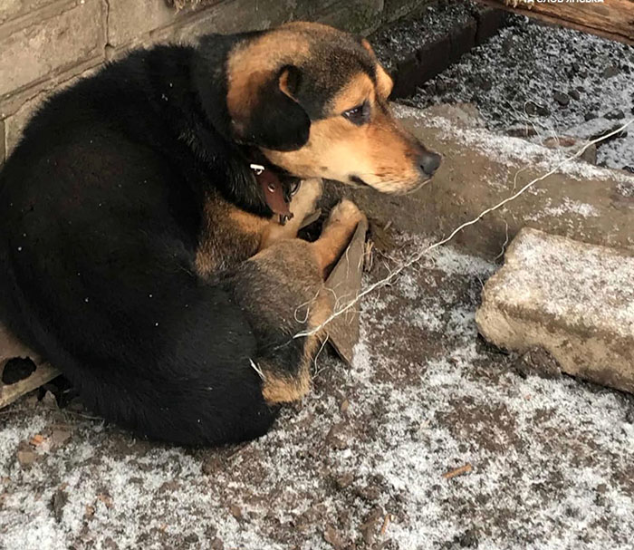Вранці інспектори помітили собаку, який заплутався лапкою у дроті та не зміг вибратися самостійно. Він був наляканий та знесилений, а враховуючи погодні умови, був приречений на смерть.