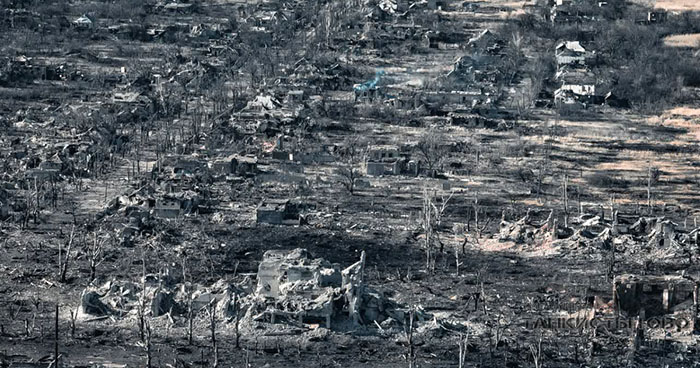 Російські окупанти опублікували фотографії зруйнованої ЗС РФ Мар'їнки, невеликого містечка Донецької області.