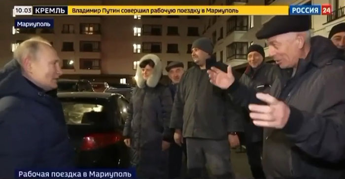 Під час можливого візиту російського диктатора Володимира Путіна до Маріуполя його зустрічали місцеві жителі. Одна з жінок, яка брала участь у зустрічі, заявила, що місцеві жителі «дочекалися» та «моляться» за Путіна. Відповідаючи на запитання Путіна, чи подобається їм у Невському, вона сказала: Дуже. Це маленьких шматочків раю у нас тут».