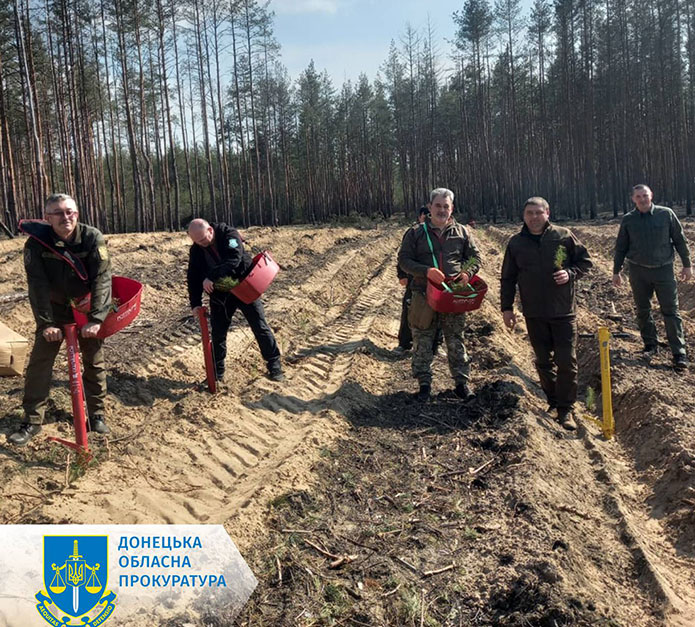 Після обстеження знищених окупантами зелених насаджень вони долучились до відновлювальних заходів, які проводили працівники Державного підприємства «Лиманський лісгосп» до Всесвітнього дня лісів, а саме взяли участь у посадці 9 тисяч саджанців сосни на понад 3-х гектарах вигорілого лісу.