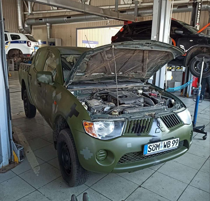 Перша партія автівок вже приїхала в Україну. Транспортні засоби наразі ремонтуються та фарбуються. Незабаром їх відправлять на фронт".