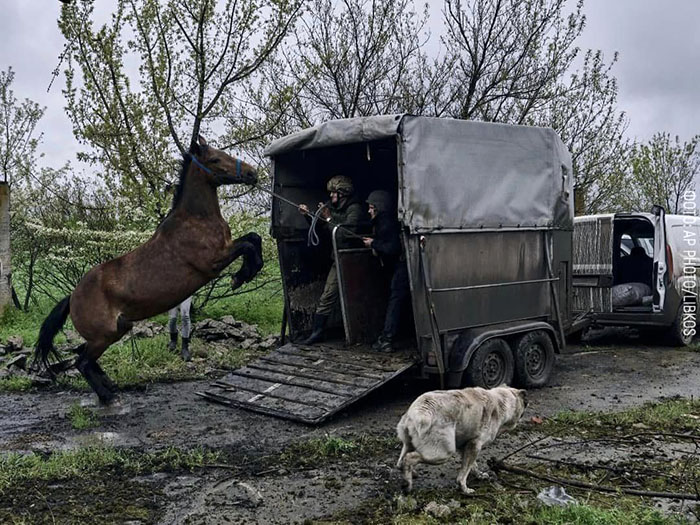 "Життя, не важливо чиє — людини чи тварини — це життя. Українські військові та волонтери евакуюють з Авдіївки ранених, переляканих коней… Квітень 2023", - йдеться у повідомленні.