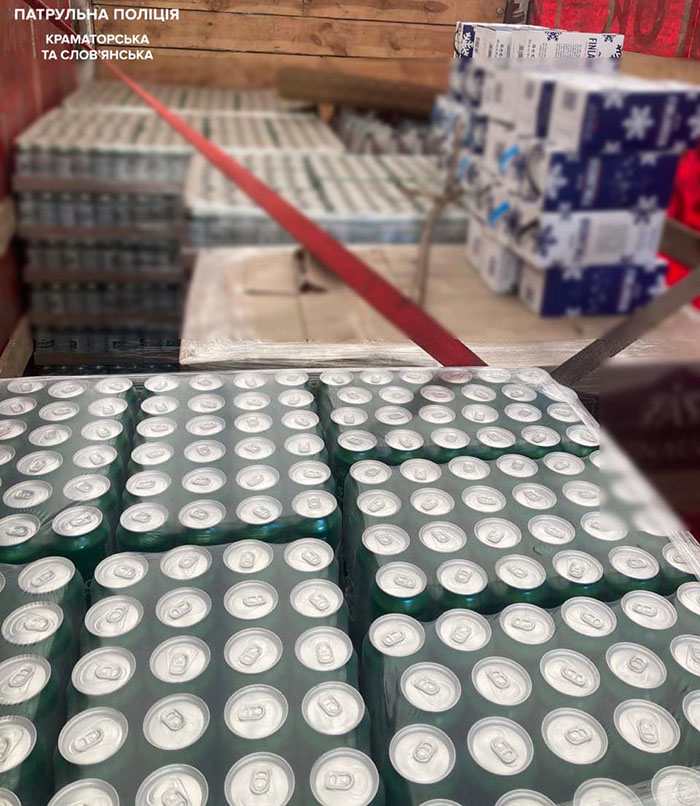 Під час поверхневої перевірки транспортного засобу поліцейські виявили рекордну кількість пляшок та банок алкогольної продукції (горілку, коньяк та пиво), а саме — 6613 літрів.
