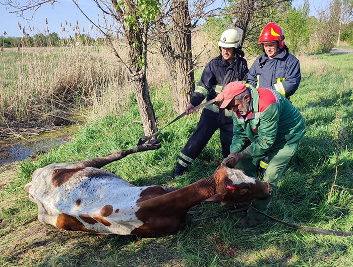 Вчора до Служби порятунку звернулась небайдужа громадянка, яка повідомила, що в м. Дружківка корова застрягла в болоті.
