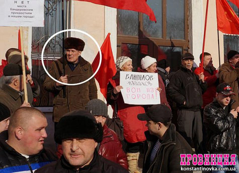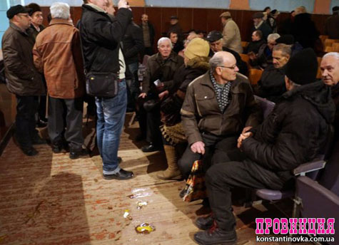 Как сообщает издание "Провинция", на встречу с Михаилом Блавацким в местном кинотеатре "...коммунисты привезли два автобуса крепких бритоголовых парней, в капюшонах, были и с кавказской внешностью, от некоторых разило спиртным. Говорят, что они были из Славянска (в конце раздался призыв - "Славянские на выход, автобус отправляется..."), Шахтерска и других городов. Среди «кукловодов» были замечены бывшие нардепы от КПУ Л.Пасечная, Константиновка и Е.Волынец, Шахтерск".