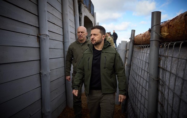 На фото: Президент України та голова Донецької ОДА оглядають будівництво фортифікаційних споруд у регіоні. Квітень 2024 року