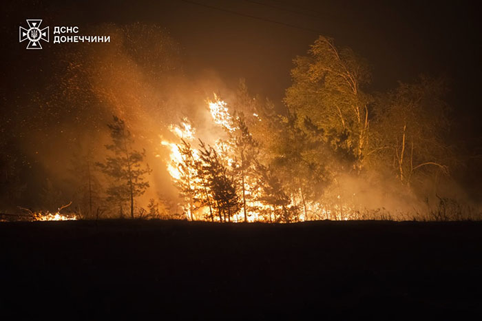 "Вчора вночі ворог обстріляв місто Лиман, внаслідок чого загорівся ліс. Через сильний поривчастий вітер вогонь розповсюдився у глиб на сотні метрів", - йдеться в повідомленні.