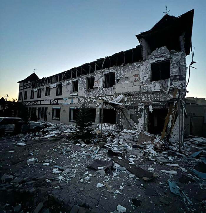"Сьогодні близько 5:00 місто знову зазнало ворожого обстрілу, - повідомив у Facebook голова військової адміністрації Слов'янська Вадим Лях. - Потрапляння до приватного готелю у районі "Молочар".
