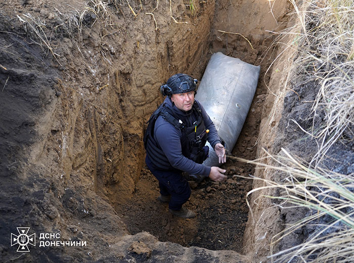 Фахівці ДСНС ідентифікували небезпечну знахідку як об’ємно-детонуючу авіабомбу ОДАБ-1500. Піротехніки знешкодили її.