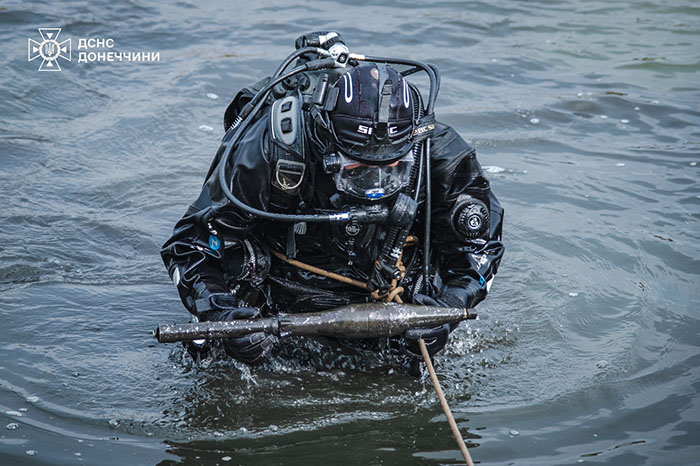 Водолази-піротехніки ДСНС виявили 7 одиниць пострілів до протитанкових гранатометів в одній із водойм області. Про це повідомляє Головне управління ДСНС України у Донецькій області.