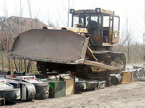 Уничтожению подверглись игровые автоматы, которые хранились в райотделе до вступления приговоров в законную силу. Бульдозер несколько раз проехал по «одноруким бандитам» стоимостью от 800 до десяти тысяч гривен, превратив их в груду металла.