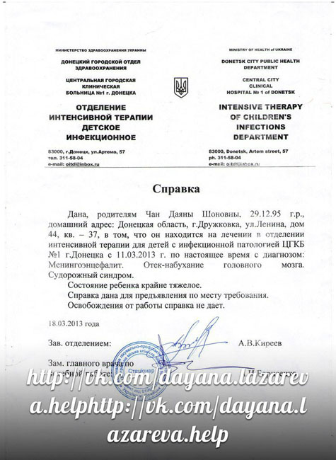 Требуется посильная материальная помощь. Даяна находится в реанимации Донецка в состоянии комы. Последний диагноз – менингит.