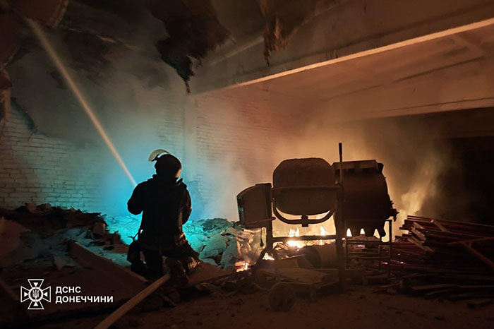 "Сьогодні опівночі ворог обстріляв місто Слов’янськ, поціливши у складську будівлю, - інформує Головне управління ДСНС України у Донецькій області. - Внаслідок влучання сталася пожежа, також було частково зруйновано покрівлю.