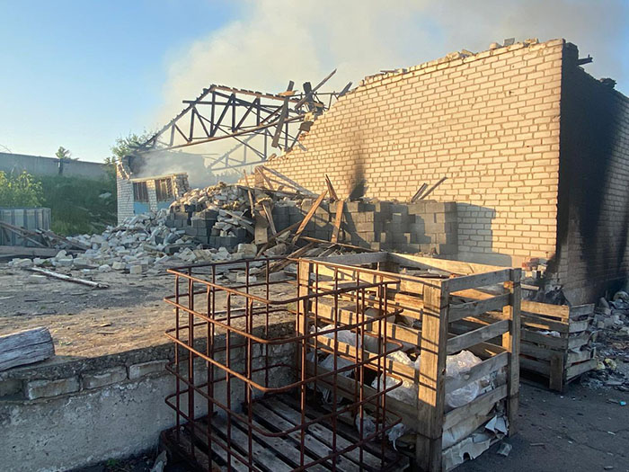 "На світанку ворожі дрони атакували с. Мирне Краматорського району, - повідомляє Головне управління ДСНС України у Донецькій облісті. - В результаті удару виникла пожежа складської споруда на території одного з підприємств.