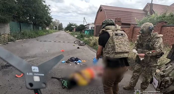 Одночасно мішенню ворога стала цивільна пара на велосипедах. Чоловік та дівчина їхали до місця, де можна підзарядити телефон. Внаслідок вибуху обидва отримали важкі поранення, у 42-річного водія сталась травматична ампутація ноги. Поліцейські знайшли їх просто на дорозі, надали першу допомогу та помчали до лікарні разом зі ще одним пораненим.