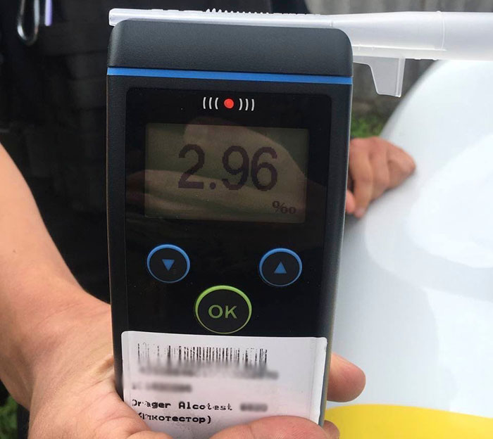 Під час перевірки документів 47-річного водія та роз’яснення йому суті адміністративного правопорушення інспектори помітили в нього ознаки алкогольного сп’яніння. Вони запропонували чоловіку пройти освідування на визначення стану сп'яніння на місці або в медичному закладі. Той погодився перевірятися на місці. Результат позитивний — спеціальний технічний прилад Драгер показав 2,96 проміле. Це майже в 15 разів вище від допустимої норми у 0,2 проміле.