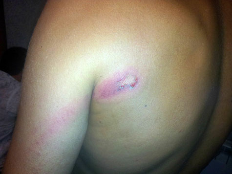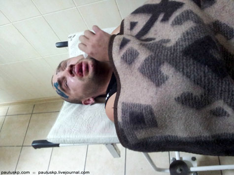 Сейчас Олег находится в челюстно-лицевом отделении больницы Вишневского, у него сломана верхняя челюсть и нос. На спине синяки, били и по почкам.